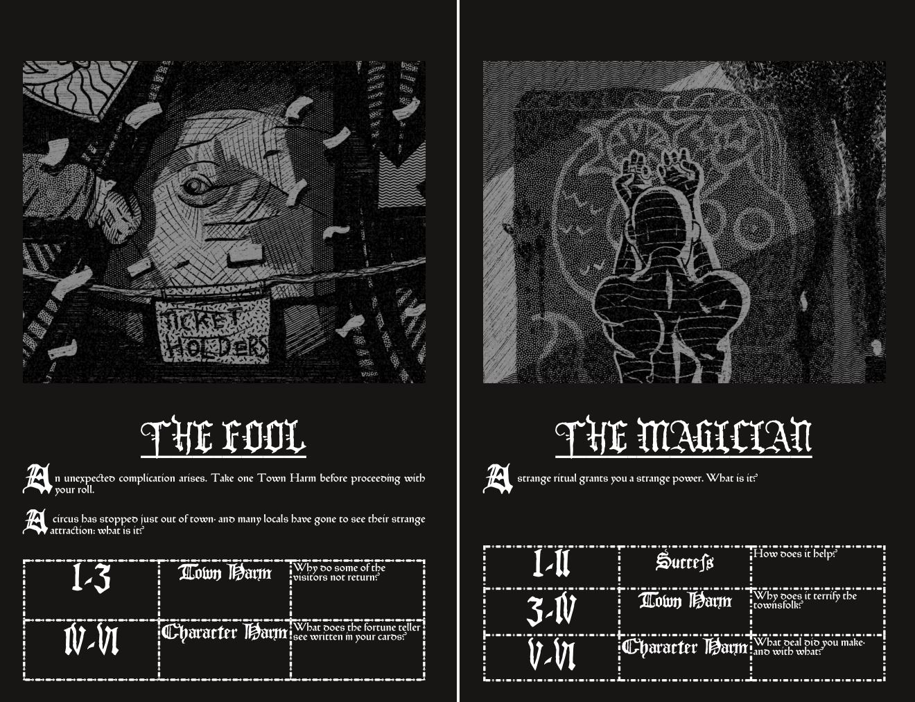 The Unconscious Sea: Abyssal Coast is a DM-less horror TTRPG. The ruleset is designed to, either with or without a group, create a horror scenario resembling a traditional weird fiction or horror short story. Create a cursed coastal town and let the dice and Major Arcana lead it to its end.